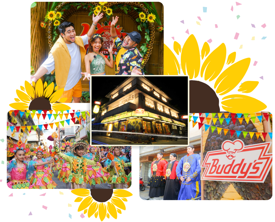 Enjoy Buddy’s festive dining your way! Visit any of our branches or have your favorites delivered straight to your door through our hotlines, Facebook Messenger, GrabFood, or FoodPanda. Celebrate every meal like a fiesta—order or visit today!